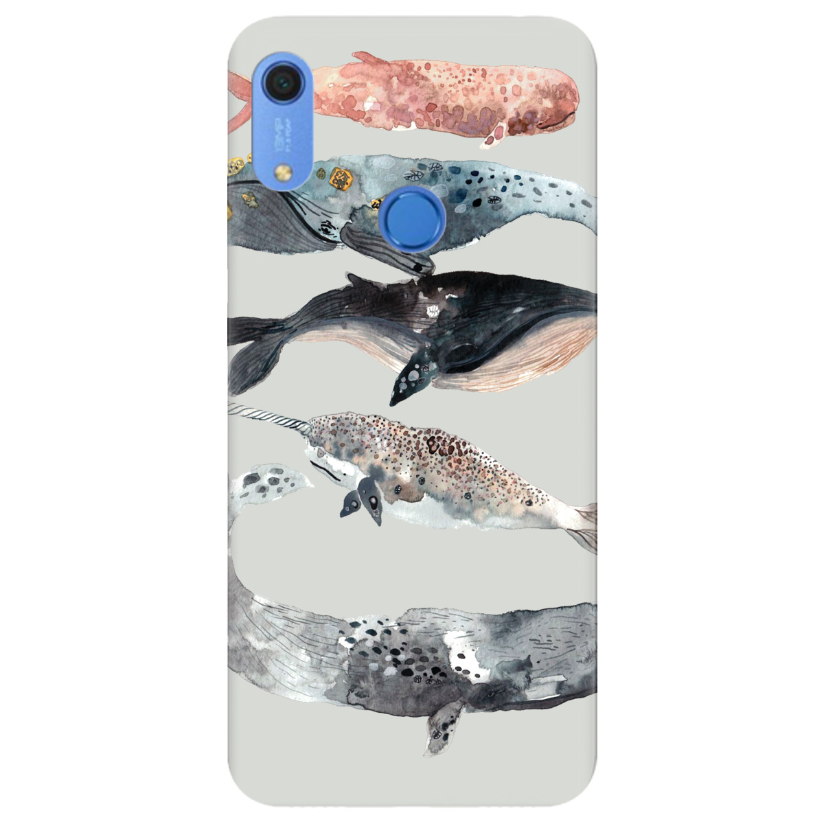 Стильный чехол Zorrov для Huawei Y6s полупрозрачный матовый soft touch Whales white не только защитит телефон, но и подчеркнет Вашу индивидуальность.