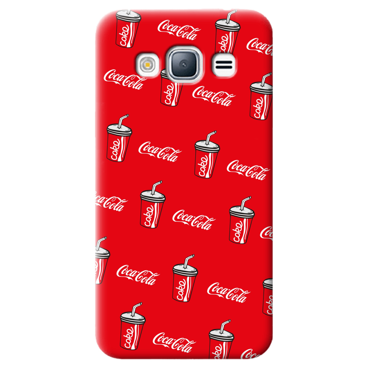Стильный чехол Zorrov для Samsung Galaxy J3 2016 ярко-красный матовый soft touch Coca Cola не только защитит телефон, но и подчеркнет Вашу индивидуальность.