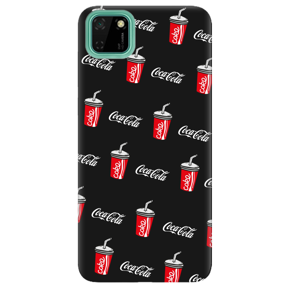 Стильный чехол Zorrov для Huawei Y5p черный матовый soft touch Coca Cola не только защитит телефон, но и подчеркнет Вашу индивидуальность.