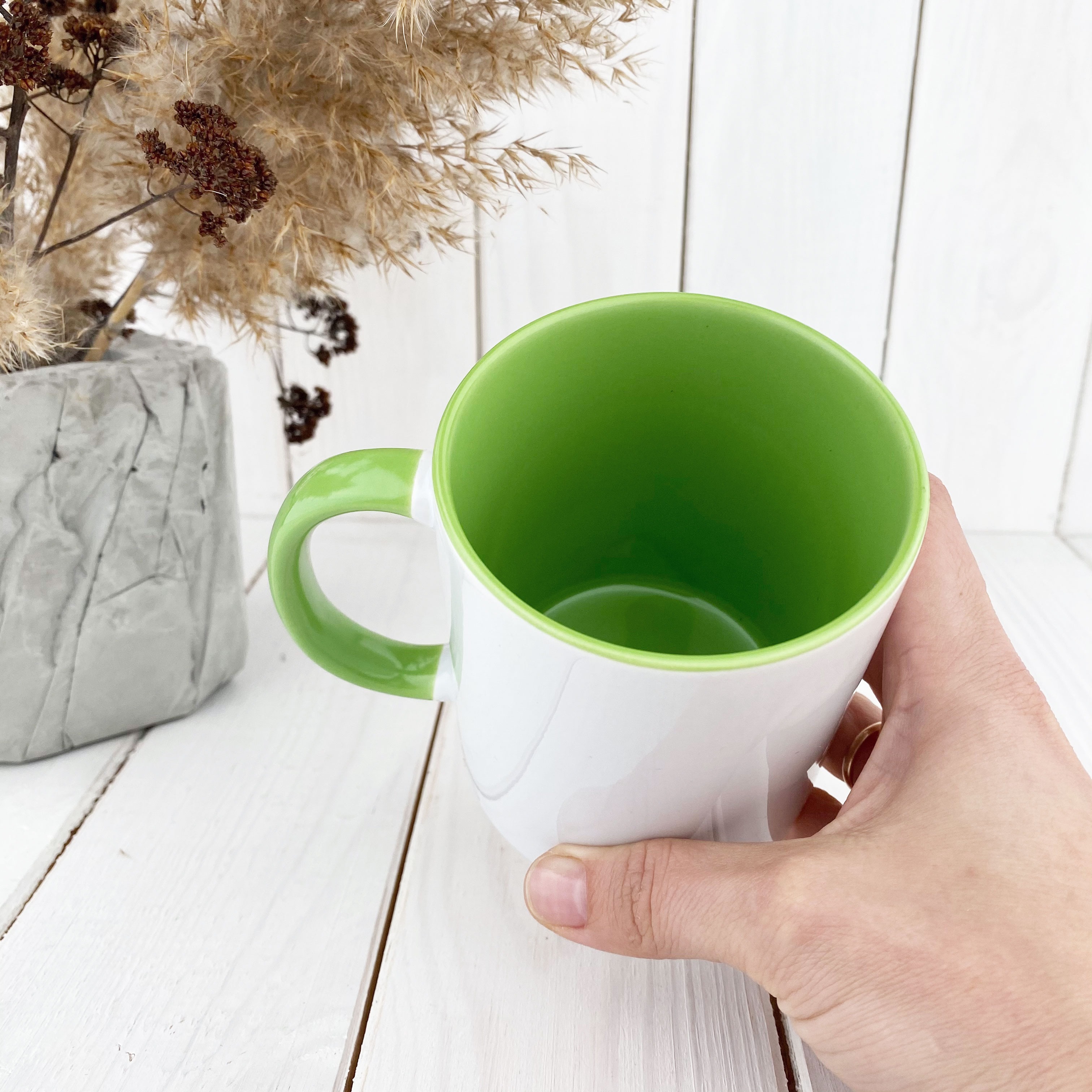 Кружка с салатовой ручкой, салатовая внутри (330 мл) Нас не зламати