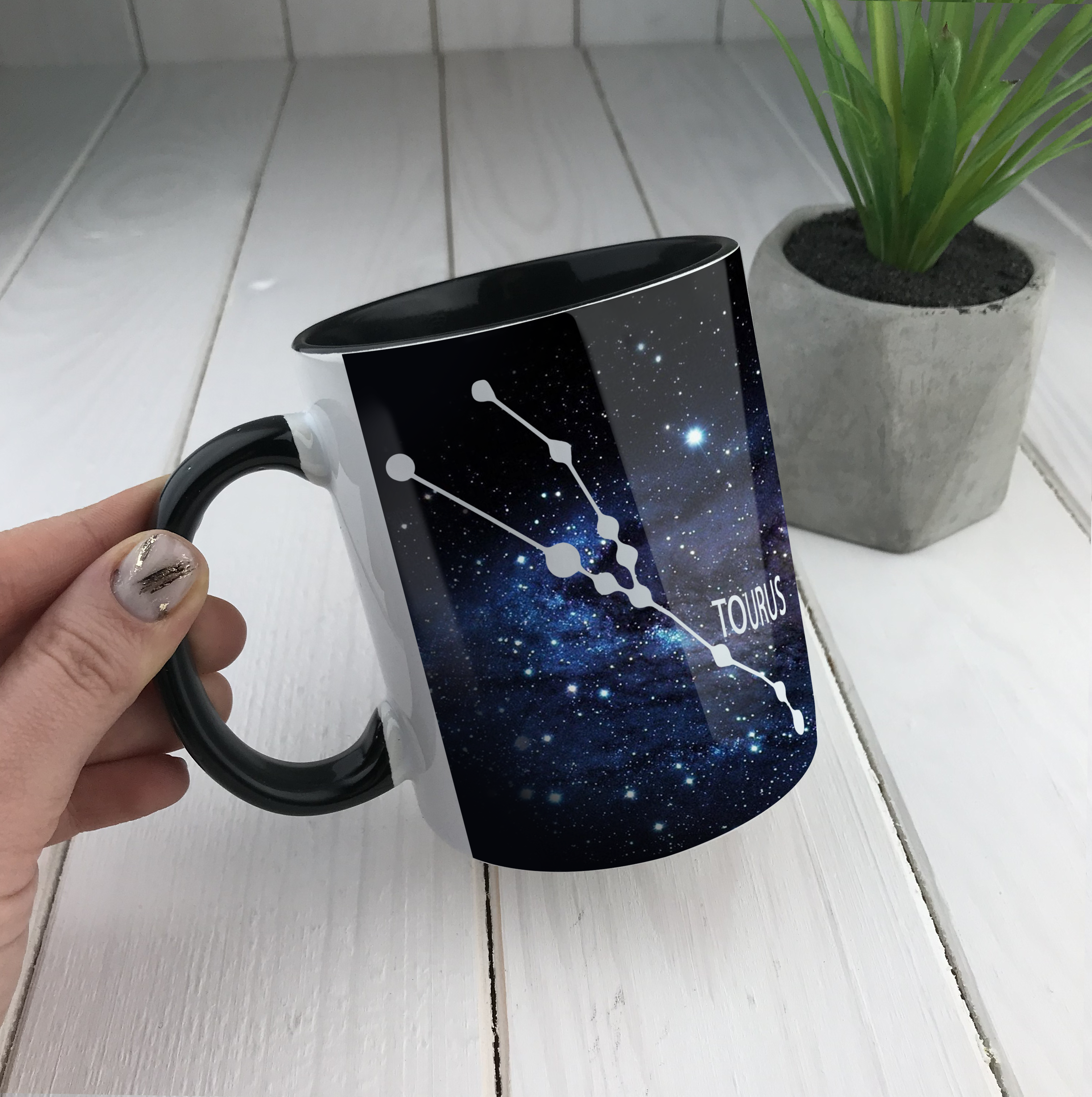 Кружка с чёрной ручкой, чёрная внутри (330 мл) Созвездие Тельца